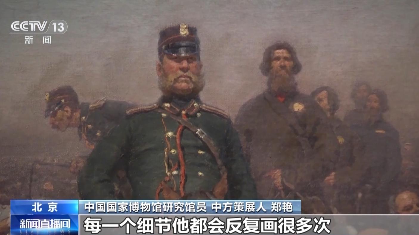 中国国家博物馆研究馆员、中方策展人 郑艳:大场面中的人,每个人的面目都可读,每一个细节他都会反复画很多次,所以作为肖像画家的列宾的确是很了不起的。